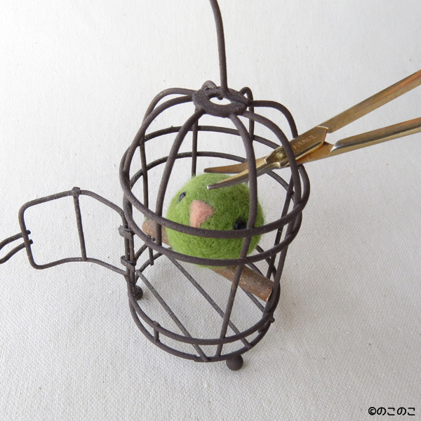 羊毛フェルトに積もった「ほこり」 Tweet こんにちは! 羊毛フェルトのまんまることりへ ようこそ!! 今日は 羊毛フェルトに積もった「ほこり」 のお話です。 「誇り」ではなく「埃」 作品を購入してくださった 皆様のお家の子も ホコリ積もっていませんか? 義母が購入してくれて、 飾ってくれているカゴ入り まんまるサザナミインコちゃん ホコリが積もっていました(ひゃ〜!!) これは大変!! 今回は、「ホコリの取り方」を ご紹介します。 *注意* のこのこの作品のみに使える ホコリの取り方です。 柔らかく仕上げる作家さんの 作品には適しません。 ご注意ください。 羊毛フェルト作品についたホコリの取り方 用意するものは セロハンテープと割り箸 「眉用はさみ」もあると良いです! 割り箸の先に、 粘着面が外になるように 割り箸にセロハンテープを 巻きつけます。 カゴのすきまから割り箸を入れて ポンポンと ホコリをセロハンテープに くっつけていきます。 左半分のホコリが取れました。 ホコリがなくなったのですが、 まんまるちゃんの頭が ぽわぽわに〜〜!! 飛び出た遊び羊毛を 眉用はさみなどの 小さいはさみでカット。 綺麗になったよ!! 綺麗になってすっきりお顔の さざなみちゃんです(笑) メルマガ登録してね! 羊毛フェルトの まんまることりでは、 HTMLという 画像付きメールマガジンを 週一回配信しています。 上の緑の枠の画像を クリックしていただくと、 登録画面になりますので、 ぜひ登録してください!! 上の写真のような スマホ用のかわいい壁紙も プレゼントしています! 詳しい登録の仕方はこちら↓ nokonokofelt.com/?page_id=908 LINE@もやっています! LINE@でも、 情報を発信しています! スマホでこの記事を 読んでくださっている方は、 下記のボタンを 押していただければ、 登録完了です!! LINE@でもスマホの 壁紙プレゼントをしています。 ぜひ、登録してくださいね!! 気持ちが「ほっこり」と やすらぐような作品を のこのこからあなたへ お届けいたします。 Tweet 投稿ナビゲーション フェルティング・フラッシュ写真と染色の勉強 コメントを残す コメントをキャンセルメールアドレスが公開されることはありません。 ※ が付いている欄は必須項目ですコメント ※ 名前 ※ メール ※ サイト 次回のコメントで使用するためブラウザーに自分の名前、メールアドレス、サイトを保存する。 Δ