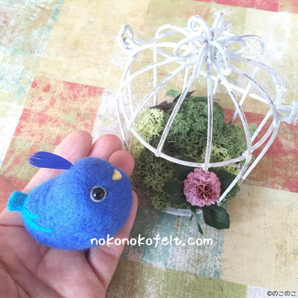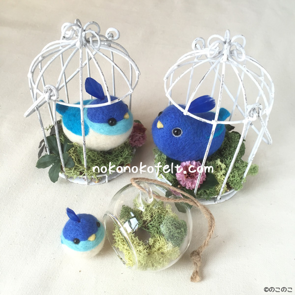 幸せの青い鳥「アルトヴァリエ版」 Tweet こんにちは! 羊毛フェルトのまんまることりへ ようこそ!! アルトヴァリエ 3月13日(日) 10時〜15時 東京ビッグサイト東館 (東2ホール) 「アルトヴァリエ」開催!! 今回、初参加で ドキドキしております。 ブース番号は ポ 40 春コミに来られる方は、 ぜひお立ち寄りくださいませ! 幸せの青い鳥 アルトヴァリエ初出展記念! 幸せの青い鳥「アルトヴァリエ版」を 制作いたしました。 全体を青くして、青の濃淡で、 羽根の模様などを表現しました。 ぱっちりお目目が愛らしい〜! 今回は、カゴから出して、 頭の「ぴょいん」を 撫でられる仕様にしました! この頭の「ぴょいん」を撫でると、 幸せがやってくる!らしいです(笑) 以前制作した カゴ入り「青い鳥」ちゃんは、 尾羽も「ぴょいん」と同じ 「羽根」で作っていましたが、 今回は手に取って愛でる前提なので、 あえて、普通のしっぽにしました。 いつもの色合いの青い鳥も 今回は手に取れるように カゴには固定しておりません。 そして!! 初お目見え! まんまる青い鳥ちゃん!!! 頭の「ぴょいん」も ちゃんと付いています!! ガラスの器に入って、 取り出せるようになっております。 ぜひ、会場で お手にとってごらんください。 間に合えば、 「多肉植物とすずめちゃん」も 持っていけるかも〜!? 当日のお楽しみかな(笑) メルマガ登録してね 羊毛フェルトの まんまることりでは、 HTMLという 画像付きメールマガジンを 週一回配信しています。 上の緑の枠の画像を クリックしていただくと、 登録画面になりますので、 ぜひ登録してください!! 上の写真のような スマホ用のかわいい壁紙も プレゼントしています! 詳しい登録の仕方はこちら↓ nokonokofelt.com/?page_id=908 LINE@でも配信中! LINE@でも、 情報を発信しています! スマホでこの記事を 読んでくださっている方は、 下記のボタンを 押していただければ、 登録完了です!! LINE@も、待ち受け画像を プレゼントしています!! ぜひ、ご登録おねがいします! ここに来て、 寒暖差が激しすぎですね〜! みなさん、風邪ひいてませんか? しっかり食べて、しっかり寝て、 元気にすごしましょうね! 気持ちが「ほっこり」と やすらぐような作品を のこのこからあなたへ お届けいたします。 Tweet 投稿ナビゲーション お金の勉強会とビジュアドール多肉植物とスズメ&メジロ コメントを残す コメントをキャンセルメールアドレスが公開されることはありません。 ※ が付いている欄は必須項目ですコメント ※ 名前 ※ メール ※ サイト 次回のコメントで使用するためブラウザーに自分の名前、メールアドレス、サイトを保存する。 Δ