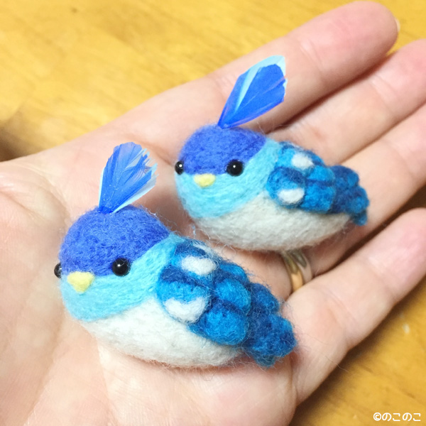 青い鳥のブローチ!! Tweet こんにちは! 羊毛フェルトのまんまることりへ ようこそ!! 新作!!青い鳥のブローチ! 「幸せの青い鳥」が ブローチになりました!! 撫でると幸せになれる (と言われている?!) 頭の「ぴょいん」も ちゃんとついています。 今の所、二羽だけなのですが、 作品展で販売しますので、 ぜひ、お手にとって ご覧になってください!! すずめのブローチも販売!! 大人気の「横向き」「前向き」な すずめのブローチも販売します! 「前向き」なすずめちゃんは 初の販売になります! ぜひ、お気に入りの子を ゲットしてください! 9月19日(月祝)〜24日(土) 滝口園子出版記念作品展 「羊毛フェルトで作る まんまることり ぽてぽてことり」 Gallery Palette(ギャラリーパレット) www.gallery-palette.com ワークショップのお席もまだあります!! まんまることり、ぽてぽてことり 幸せの青い鳥も作れちゃう ワークショップを毎日開催します! お席もまだございますので、 ご予約お待ちしております! 詳細はこちら↓ www.nokonokofelt.com/?p=1998 お好きなボタンを クリックしてね!!(笑) にほんブログ村 にほんブログ村 にほんブログ村 メルマガ登録すると・・ 羊毛フェルトの まんまることりでは、 HTMLという 画像付きメールマガジンを 週一回配信しています。 上の緑の枠の画像を クリックしていただくと、 登録画面になりますので、 ぜひ登録してください!! こんなスマホの壁紙もプレゼント! リアルタイプのすずめちゃんも 可愛いでしょ?? 詳しい登録の仕方はこちら↓ nokonokofelt.com/?page_id=908 LINE@も配信中!! LINE@でも、 情報を発信しています! スマホでこの記事を 読んでくださっている方は、 下記のボタンを 押していただければ、 登録完了です!! LINE@の壁紙はメルマガの壁紙と 変えている場合もあるんですよ〜! 手軽に会話もできるので、 質問などありましたら、 LINEしてくださいね〜! 気持ちが「ほっこり」と やすらぐ作品を のこのこからあなたへ お届けいたします。 Tweet 投稿ナビゲーション 「2017まんまることりカレンダー」作りました!「羊毛フェルトで作る まんまることり ぽてぽてことり」出版記念作品展 コメントを残す コメントをキャンセルメールアドレスが公開されることはありません。 ※ が付いている欄は必須項目ですコメント ※ 名前 ※ メール ※ サイト 次回のコメントで使用するためブラウザーに自分の名前、メールアドレス、サイトを保存する。 Δ