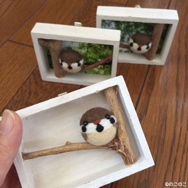 「羊毛フェルトで作る まんまることり ぽてぽてことり」出版記念作品展 Tweet こんにちは! 羊毛フェルトのまんまることり のこのこです。 出版記念作品展 9月20日発売の 「羊毛フェルトで作る まんまることり ぽてぽてことり」 出版を記念して、 出版記念作品展を開催いたします! 9月19日(月祝)〜24日(土) 11時〜19時 19日は18時まで、24日は16時まで 南青山「Gallery Palette」 www.gallery-palette.com 東京都港区南青山4-17-22 TZビル 銀座線・千代田線・半蔵門線「表参道駅」A4出口から徒歩8分 銀座線「外苑前駅」1a出口から徒歩10分 Sunny Hillsさん斜め前の坂道を下りていく感じなのですが、 そこから住宅街をちょっと歩きます。 展示作品と販売作品 作品展では、本に載っている 作品を全て展示いたします。 この子達がお待ちしております!! 販売作品もありますよ〜!! まんまることりやぽてぽてことり、 2017年カレンダー、 ポストカードやTシャツ、バッグも 販売いたします。 もちろん、新刊本も販売します!! ぜひ、お手にとってご覧ください! ワークショップも毎日開催! 期間中は毎日ワークショップも 開催いたします。 まんまることり、ぽてぽてことり 幸せの青い鳥を 作っていただけます〜! 申し込みなどの詳細はこちらから↓ www.nokonokofelt.com/?p=1998 ボタンを押して 応援お願いします!! にほんブログ村 にほんブログ村 メルマガ登録すると・・ 羊毛フェルトの まんまることりでは、 HTMLという 画像付きメールマガジンを 週一回配信しています。 上の緑の枠の画像を クリックしていただくと、 登録画面になりますので、 ぜひ登録してください!! こんなスマホの壁紙もプレゼント! リアルタイプのすずめちゃんも 可愛いでしょ?? 詳しい登録の仕方はこちら↓ nokonokofelt.com/?page_id=908 LINE@も配信中!! LINE@でも、 情報を発信しています! スマホでこの記事を 読んでくださっている方は、 下記のボタンを 押していただければ、 登録完了です!! LINE@の壁紙はメルマガの壁紙と 変えている場合もあるんですよ〜! 手軽に会話もできるので、 質問などありましたら、 LINEしてくださいね〜! 気持ちが「ほっこり」と やすらぐ作品を のこのこからあなたへ お届けいたします。 Tweet 投稿ナビゲーション 青い鳥のブローチ!!Amazonキャンペーンやりま〜す!! コメントを残す コメントをキャンセルメールアドレスが公開されることはありません。 ※ が付いている欄は必須項目ですコメント ※ 名前 ※ メール ※ サイト 次回のコメントで使用するためブラウザーに自分の名前、メールアドレス、サイトを保存する。 Δ
