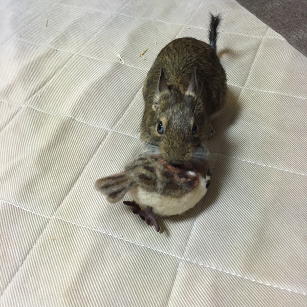 羊毛フェルトのぽてぽてふくろう Tweet こんにちは! 羊毛フェルトのまんまることりへ ようこそ!! ぽてぽてふくろう 月に二回、 サンフェルトさんでワークショップを開催することになり、 12月以降の作品の試作をしています。 ふくろうちゃん〜!! 来年のワークショップになりますが、 リースに留まったふくろうを 作っていただこうと思っています。 「ふくろう」は「不苦労」で、 縁起がいいんですよね〜!! ニードルの刺し方で、フワフワ感や 模様の感じを出します。 出来上がりをお楽しみに〜! スズメとひなちゃん 先日、スズメのペンケースを購入! すごく可愛いんです〜! デグーのひなちゃんも 興味津々。 ひなちゃんとリアルタイプの スズメちゃんの写真が 可愛く撮れるかも?!!と スズメちゃんを置いて、 撮影準備していたら、 きゃ〜〜〜〜〜!!!!! 食われてる!! じゃなくて、 咥えてる〜!! この後、ひなちゃんは シャッター音にビビって 逃げて行きました。 ツーショット撮影、失敗です(笑) 咥えられちゃったスズメちゃんに 応援をお願いします! にほんブログ村 にほんブログ村 メルマガ登録すると・・ 羊毛フェルトの まんまることりでは、 HTMLという 画像付きメールマガジンを 週一回配信しています。 上の緑の枠の画像を クリックしていただくと、 登録画面になりますので、 ぜひ登録してください!! こんなスマホの壁紙もプレゼント! リアルタイプのすずめちゃんも 可愛いでしょ?? 詳しい登録の仕方はこちら↓ nokonokofelt.com/?page_id=908 LINE@も配信中!! LINE@でも、 情報を発信しています! スマホでこの記事を 読んでくださっている方は、 下記のボタンを 押していただければ、 登録完了です!! LINE@の壁紙はメルマガの壁紙と 変えている場合もあるんですよ〜! 手軽に会話もできるので、 質問などありましたら、 LINEしてくださいね〜! 気持ちが「ほっこり」と やすらぐ作品を のこのこからあなたへ お届けいたします。 Tweet 投稿ナビゲーション 10月8日のワークショップ!「2017年まんまることりカレンダー」ネット販売開始しました!! コメントを残す コメントをキャンセルメールアドレスが公開されることはありません。 ※ が付いている欄は必須項目ですコメント ※ 名前 ※ メール ※ サイト 次回のコメントで使用するためブラウザーに自分の名前、メールアドレス、サイトを保存する。 Δ
