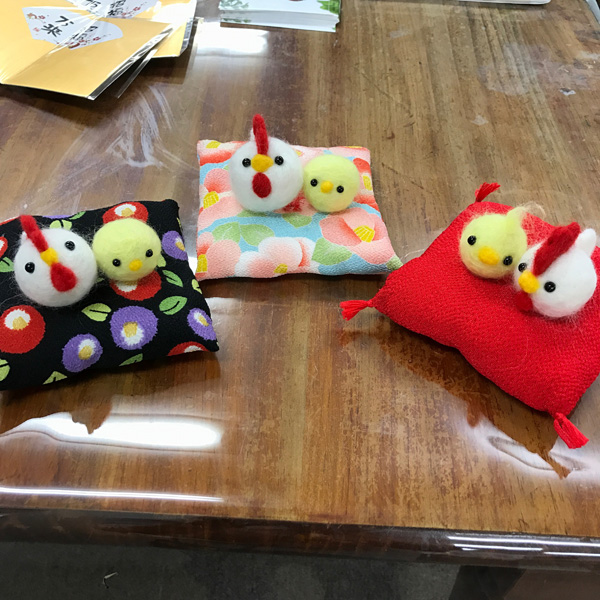12月のワークショップ Tweet こんにちは! 羊毛フェルトのまんまることりへ ようこそ!! 12月のワークショップ 遅くなってしまいましたが、 12月のワークショップで 作っていただいた作品をご紹介! 可愛いにわとり親子が 出来上がりました! お座布団の柄もいろいろあるので、 お好きな柄をチョイス! カラフルで素敵です〜!! ワークショップにご参加くださり ありがとうございました!! 1月以降のワークショップ 1月24日(火)、28日(土) ぽてぽてにゃんこちゃん 2月14日(火)、18日(土) 羊毛フェルトで作るお雛様 まんまるいお雛様を作ります。 赤い毛氈、金屏風付きです〜! 3月7日(火)、11日(土) ぽてぽてフクロウちゃん リースに留まった、 目の周りがふわふわな フクロウを作ります。 2月、3月の申し込みフォーム付きの 記事を来週書きますね! 予定を空けておいてくださいませ〜! ブログ村ボタンを押して 応援お願いします!! にほんブログ村 にほんブログ村 メルマガ登録すると・・ 羊毛フェルトの まんまることりでは、 HTMLという 画像付きメールマガジンを 週一回配信しています。 上の緑の枠の画像を クリックしていただくと、 登録画面になりますので、 ぜひ登録してください!! こんなスマホの壁紙もプレゼント! リアルタイプのすずめちゃんも 可愛いでしょ?? 詳しい登録の仕方はこちら↓ nokonokofelt.com/?page_id=908 LINE@も配信中!! LINE@でも、 情報を発信しています! スマホでこの記事を 読んでくださっている方は、 下記のボタンを 押していただければ、 登録完了です!! LINE@の壁紙はメルマガの壁紙と 変えている場合もあるんですよ〜! 手軽に会話もできるので、 質問などありましたら、 LINEしてくださいね〜! 気持ちが「ほっこり」と やすらぐ作品を のこのこからあなたへ お届けいたします。 Tweet 投稿ナビゲーション 西武渋谷7階サンイデーでの展示販売2月のワークショップ申し込み受付中!! コメントを残す コメントをキャンセルメールアドレスが公開されることはありません。 ※ が付いている欄は必須項目ですコメント ※ 名前 ※ メール ※ サイト 次回のコメントで使用するためブラウザーに自分の名前、メールアドレス、サイトを保存する。 Δ