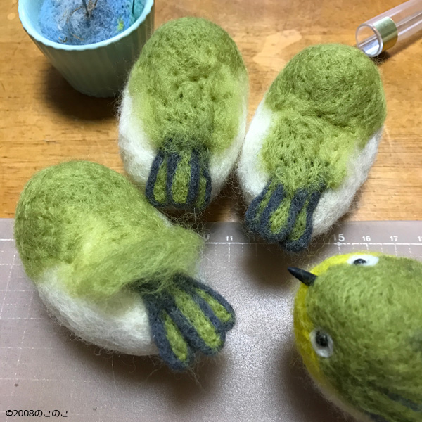 羊毛フェルトのメジロちゃんを制作中!! Tweet こんにちは! 羊毛フェルトのまんまることりへ ようこそ!! メジロちゃんを作っているよ! 台湾イベントに向けて、 ちょっとづつ制作が進んでいます。 ずんだ餅?! リアルタイプのメジロちゃんを 制作中です! 尾羽をつけて、羽をつけて〜! 嘴が足りない!! 慌てて嘴を制作。 オーブン粘土(FIMO)で、 嘴を作ります。 尖ったタイプがメジロちゃん。 ぷっくりしているのがすずめちゃん。 オーブン粘土でミニチュアスイーツを 制作していた技術がこんなところで 生かされるとは!!(笑) 明日には、メジロちゃんを お披露目できるかな〜?! 頑張ります!! ブログ村ボタンを押して 応援お願いします!! にほんブログ村 にほんブログ村 メルマガ登録すると・・ 羊毛フェルトの まんまることりでは、 HTMLという 画像付きメールマガジンを 週一回配信しています。 上の緑の枠の画像を クリックしていただくと、 登録画面になりますので、 ぜひ登録してください!! こんなスマホの壁紙もプレゼント! リアルタイプのすずめちゃんも 可愛いでしょ?? 詳しい登録の仕方はこちら↓ nokonokofelt.com/?page_id=908 LINE@も配信中!! LINE@でも、 情報を発信しています! スマホでこの記事を 読んでくださっている方は、 下記のボタンを 押していただければ、 登録完了です!! LINE@の壁紙はメルマガの壁紙と 変えている場合もあるんですよ〜! 手軽に会話もできるので、 質問などありましたら、 LINEしてくださいね〜! 気持ちが「ほっこり」と やすらぐ作品を のこのこからあなたへ お届けいたします。 Tweet 投稿ナビゲーション 名刺とフライヤー羊毛フェルトのメジロちゃんが出来上がりました! コメントを残す コメントをキャンセルメールアドレスが公開されることはありません。 ※ が付いている欄は必須項目ですコメント ※ 名前 ※ メール ※ サイト 次回のコメントで使用するためブラウザーに自分の名前、メールアドレス、サイトを保存する。 Δ