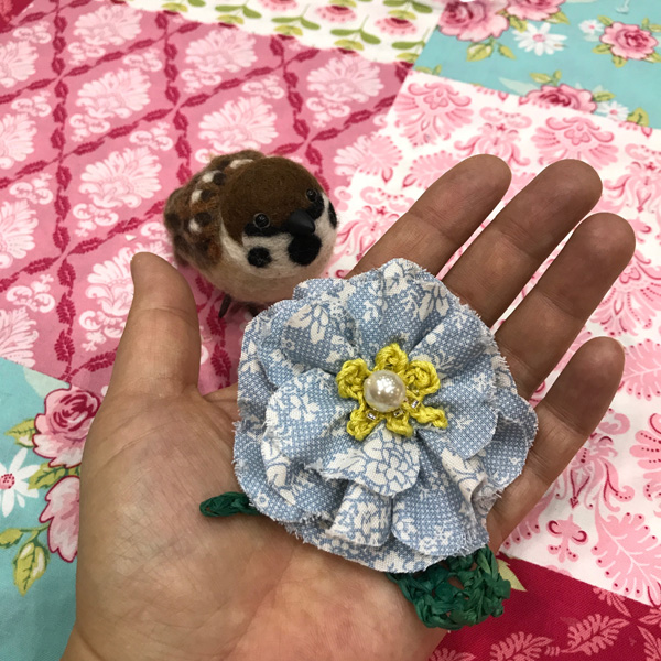 ホビーショー/参加したワークショップ編 Tweet こんにちは! 羊毛フェルトのまんまることりへ ようこそ!! ホビーショー第3弾です(笑) ホビーショーで参加したワークショップ 自分のワークショップ後に、 飯塚幸先生のワークショップに 参加してきました! (お写真は、ギャラリーパレットの プロデューサー秋間さんと 幸先生にお借りいたしました。) 丁寧に教えていただけて、 サクサクと出来上がり!! すずめ(チュン太郎)も喜ぶ可愛さ!! 先生の見本のコサージュと一緒に! 幸先生〜! ありがとうございました〜!! このコサージュは、 先日、作品展を開催されていた 『45歳からの品よく可愛い 毎日のアクセサリー 「ブーケ・ドゥ・ミュゲ」』の Reikoさんに会うときに 着けていきました〜! そのお話は、 また後ほど(笑) ブログ村ボタンを押して 応援お願いします!! にほんブログ村 にほんブログ村 メルマガ登録すると・・ 羊毛フェルトの まんまることりでは、 HTMLという 画像付きメールマガジンを 週一回配信しています。 上の緑の枠の画像を クリックしていただくと、 登録画面になりますので、 ぜひ登録してください!! こんなスマホの壁紙もプレゼント! リアルタイプのすずめちゃんも 可愛いでしょ?? 詳しい登録の仕方はこちら↓ nokonokofelt.com/?page_id=908 LINE@も配信中!! LINE@でも、 情報を発信しています! スマホでこの記事を 読んでくださっている方は、 下記のボタンを 押していただければ、 登録完了です!! LINE@の壁紙はメルマガの壁紙と 変えている場合もあるんですよ〜! 手軽に会話もできるので、 質問などありましたら、 LINEしてくださいね〜! 気持ちが「ほっこり」と やすらぐ作品を のこのこからあなたへ お届けいたします。 Tweet 投稿ナビゲーション ホビーショー/お会いした先生方ホビーショー/購入したもの〜! コメントを残す コメントをキャンセルメールアドレスが公開されることはありません。 ※ が付いている欄は必須項目ですコメント ※ 名前 ※ メール ※ サイト 次回のコメントで使用するためブラウザーに自分の名前、メールアドレス、サイトを保存する。 Δ
