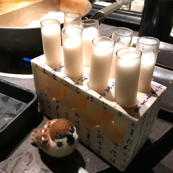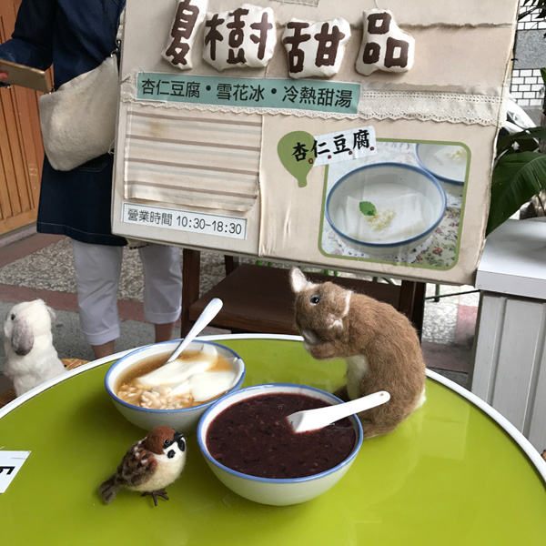 台湾/食べ物編 Tweet こんにちは! 羊毛フェルトのまんまることりへ ようこそ!! 台湾/食べ物編 台湾で食べたもののご紹介〜! 初日の夜は、雨降る中、 食べるところを探して歩き、 見つけた食堂! 現地の皆さんが普通に入るようなお店。 親切な日本人が手書きで書いた(ような) 日本語のメニューもあって、 ちょっと安心。 お米の麺の肉味噌のせで、 一杯90元(350~360円ぐらい) 台湾ビールで乾杯! 二日目の夜は、有名な「火鍋」 ただ単に火にかけるから「火鍋」だと お店のお兄さんは言ってました。 そんなに単純なんだ〜(笑) 辛い鍋と、辛くない鍋の二種類で がっつりいただきました。 つみれのようなお団子を眺める すずめちゃん。 一緒に鍋に入れられちゃうよ〜! 辛いお鍋の中には、普通のお豆腐と あひるの血が混ざった(!!) お豆腐が入っています。 結構美味しかったですよ〜! 鍋の後は、 乳酸菌飲料のスムージーのような 飲み物が!! 三日目の朝ごはん! ホテル近くのパン屋さんで買ったパン。 サンドイッチをフレンチトースト してある感じです。 中国語でサンドイッチのことを 「三明治」って書くんですよ! そんなところもなぜか嬉しい。 お買い物で迪化街に行った時に いただいた「豆花」!! すずめちゃんも うさぎちゃん(©畑 牧子)も 大喜び〜!! あずきも煮た落花生も どちらもすっごく美味しかったです〜! 美味しすぎて、 スーパーで缶詰買いました(笑) 三日目の夜は、 饒河街夜市に行って食べたのですが、 食べ物の写真撮り忘れました! すっごい人で、どこも座れなくて ずっとウロウロ。 やっと空いたテーブルで、 読めないメニューにあてずっぽで 注文しました! 超、楽しい〜〜!! おじさんが、 中華鍋をガンガン振って 作ったチャーハンは 大変おいしかったです!! キャラクターのフクロウ画像は、 「観光〜街並み編」で!! 帰りの機内食〜! 映画を見ながら、ぺろっと いただいちゃいました! 台湾の食は、 日本人に合いますね〜!! 今回、時期がちょっと早かったようで、 龍鬚菜(ロンシューツァイ)が 食べらなかったのが残念〜! そうそう!! 台湾セブンイレブンの肉まんが すっごくおいしかったです!! おためしあれ! ブログ村ボタンを押して 応援お願いします!! にほんブログ村 にほんブログ村 メルマガ登録すると・・ 羊毛フェルトの まんまることりでは、 HTMLという 画像付きメールマガジンを 週一回配信しています。 上の緑の枠の画像を クリックしていただくと、 登録画面になりますので、 ぜひ登録してください!! こんなスマホの壁紙もプレゼント! リアルタイプのすずめちゃんも 可愛いでしょ?? 詳しい登録の仕方はこちら↓ nokonokofelt.com/?page_id=908 LINE@も配信中!! LINE@でも、 情報を発信しています! スマホでこの記事を 読んでくださっている方は、 下記のボタンを 押していただければ、 登録完了です!! LINE@の壁紙はメルマガの壁紙と 変えている場合もあるんですよ〜! 手軽に会話もできるので、 質問などありましたら、 LINEしてくださいね〜! 気持ちが「ほっこり」と やすらぐ作品を のこのこからあなたへ お届けいたします。 Tweet 投稿ナビゲーション 台湾/イベント編台湾/観光〜街並み編 コメントを残す コメントをキャンセルメールアドレスが公開されることはありません。 ※ が付いている欄は必須項目ですコメント ※ 名前 ※ メール ※ サイト 次回のコメントで使用するためブラウザーに自分の名前、メールアドレス、サイトを保存する。 Δ