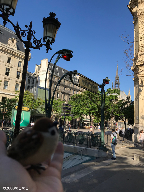 パリ観光(その1) Tweet JAPAN EXPO PARISが 終わって、自由行動の日です! パリに来て7日目で 初メトロです(笑) まずはシテ島へ!! ホテル近くのメトロ駅から シテ島へ! 通勤時間と重なり、結構な混雑。 乗り換えたら、ちょっと空いたので チュン太郎を電車真ん中のバーに 留まらせて慌てて撮影。 怪しい光に包まれたチュン。 シテ駅校内。登るの大変んだけど 階段かっこいい〜! 「メトロの駅入り口は、 かっこいいチュン!」 シテ島の花市が開催される場所の 噴水?かな? お水が流れています。 「気持ちが良いチュン!」 そうそう! 本物「イエスズメ」ちゃんにも 出会えました〜! 「砂浴び気持ちが良いチュン!」 ちょいと迷子になりつつ ノートルダム! 静かに中を見学。 サント・シャペル 降り注ぐようなステンドグラス。 パリに行かれる方は、 絶対に行った方が良いです。 パレ・ド・ジュスティス 「チュン太郎は無実でチュン!」 メトロの切符、カルネで購入。 ノートルダムの日本語説明書 入り口すぐの古い販売機で購入。 サントシャペルの日本語説明書は、 入り口に置いてありました。 サントシャペルで買ったエコバッグと ルーブル近くのオーガニック店で買った エコバッグ! ここの店員のお姉さんが 優しくて素敵だった〜! 次回はルーブル、凱旋門 エッフェル塔〜! パリ観光(その2) おまけ画像 日本語が書いてあるの わかりますか? 極度乾燥(しなさい)だって! ブログ村ボタンを押して 応援お願いします!! にほんブログ村 にほんブログ村 メルマガ登録すると・・ 羊毛フェルトの まんまることりでは、 HTMLという 画像付きメールマガジンを 週一回配信しています。 上の緑の枠の画像を クリックしていただくと、 登録画面になりますので、 ぜひ登録してください!! こんなスマホの壁紙もプレゼント! リアルタイプのすずめちゃんも 可愛いでしょ?? 詳しい登録の仕方はこちら↓ nokonokofelt.com/?page_id=908 LINE@も配信中!! LINE@でも、 情報を発信しています! スマホでこの記事を 読んでくださっている方は、 下記のボタンを 押していただければ、 登録完了です!! LINE@の壁紙はメルマガの壁紙と 変えている場合もあるんですよ〜! 手軽に会話もできるので、 質問などありましたら、 LINEしてくださいね〜! 気持ちが「ほっこり」と やすらぐ作品を のこのこからあなたへ お届けいたします。 Tweet 投稿ナビゲーション JAPAN EXPO PARIS(その3)パリ観光(その2) コメントを残す コメントをキャンセルメールアドレスが公開されることはありません。 ※ が付いている欄は必須項目ですコメント ※ 名前 ※ メール ※ サイト 次回のコメントで使用するためブラウザーに自分の名前、メールアドレス、サイトを保存する。 Δ