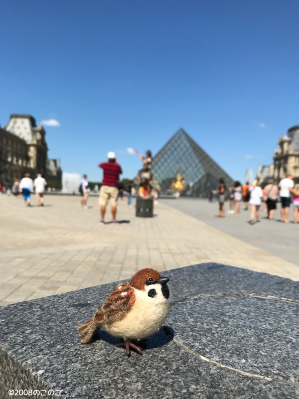 パリ観光(その2) Tweet JAPAN EXPO PARISが 終わって、自由行動の日です! 今回は、 チュン太郎が説明してくれます。 セーヌ川を渡って次に向かうのは ルーブル美術館 ガラスのピラミッドを 持つような格好をして 撮影するらしいチュン。 僕は無理チュン。 知っている名画や彫刻が ゴロゴロしているチュン。 そして、一緒に撮影OKチュン。 素晴らしいチュン。 モナリザさんはものすごい人気で 遠くでおしまい!チュン! ルーブル美術館のチケット 絵柄が違う〜!! 美術館のお土産やさんで購入 ラ・ココットさんのポーチは一目惚れ〜! ママは、買い物しすぎチュン。 ルーブルの次は 凱旋門チュン!! パリ観光(その3) ブログ村ボタンを押して 応援お願いします!! にほんブログ村 にほんブログ村 メルマガ登録すると・・ 羊毛フェルトの まんまることりでは、 HTMLという 画像付きメールマガジンを 週一回配信しています。 上の緑の枠の画像を クリックしていただくと、 登録画面になりますので、 ぜひ登録してください!! こんなスマホの壁紙もプレゼント! リアルタイプのすずめちゃんも 可愛いでしょ?? 詳しい登録の仕方はこちら↓ nokonokofelt.com/?page_id=908 LINE@も配信中!! LINE@でも、 情報を発信しています! スマホでこの記事を 読んでくださっている方は、 下記のボタンを 押していただければ、 登録完了です!! LINE@の壁紙はメルマガの壁紙と 変えている場合もあるんですよ〜! 手軽に会話もできるので、 質問などありましたら、 LINEしてくださいね〜! 気持ちが「ほっこり」と やすらぐ作品を のこのこからあなたへ お届けいたします。 Tweet 投稿ナビゲーション パリ観光(その1)パリ観光(その3) コメントを残す コメントをキャンセルメールアドレスが公開されることはありません。 ※ が付いている欄は必須項目ですコメント ※ 名前 ※ メール ※ サイト 次回のコメントで使用するためブラウザーに自分の名前、メールアドレス、サイトを保存する。 Δ