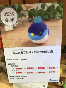 Osaka手づくりフェア2018ありがとうございました! Tweet Osaka手づくりフェアの サンフェルトさんブースで ワークショップをするために 大阪に行きました!! 台風で大変だったと思うのですが、 大阪の皆さんは元気でした! まだまだ、普通の生活に 戻れない方が多いと思いますが、 無理だけはしないようにしてください。 Osaka手づくりフェア サンフェルトさんブースでは 「幸せの青い鳥」を展示させて いただきました。 お隣はピエニシエニ先生〜! 4月のホビーショーで大好評だった 「幸せの青い鳥」 今回は、羊毛盆栽や羊毛苔玉に 留まっている幸せの青い鳥も 展示させていただきました。 ワークショップも 「まんまることり®の幸せの青い鳥」 ありがたいことに満席御礼〜! たくさんの幸せの青い鳥が 飛び立って行きました。 ワークショップに 参加してくださった皆さん、 キットや本を 購入してくださった皆さん、 ありがとうございました!! 来年も大阪に来れるように 頑張ります!! ブログ村ボタンを押して 応援お願いします!! にほんブログ村 にほんブログ村 メルマガ登録すると・・ 羊毛フェルトの まんまることりでは、 HTMLという 画像付きメールマガジンを 週一回配信しています。 上の緑の枠の画像を クリックしていただくと、 登録画面になりますので、 ぜひ登録してください!! こんなスマホの壁紙もプレゼント! リアルタイプのすずめちゃんも 可愛いでしょ?? 詳しい登録の仕方はこちら↓ nokonokofelt.com/?page_id=908 LINE@も配信中!! LINE@でも、 情報を発信しています! スマホでこの記事を 読んでくださっている方は、 下記のボタンを 押していただければ、 登録完了です!! LINE@の壁紙はメルマガの壁紙と 変えている場合もあるんですよ〜! 手軽に会話もできるので、 質問などありましたら、 LINEしてくださいね〜! 気持ちが「ほっこり」と やすらぐ作品を のこのこからあなたへ お届けいたします。 Tweet 投稿ナビゲーション 9/15(土)東京 田原町/羊毛刺繍のミニ額ワークショップ電子書籍化!! コメントを残す コメントをキャンセルメールアドレスが公開されることはありません。 ※ が付いている欄は必須項目ですコメント ※ 名前 ※ メール ※ サイト 次回のコメントで使用するためブラウザーに自分の名前、メールアドレス、サイトを保存する。 Δ