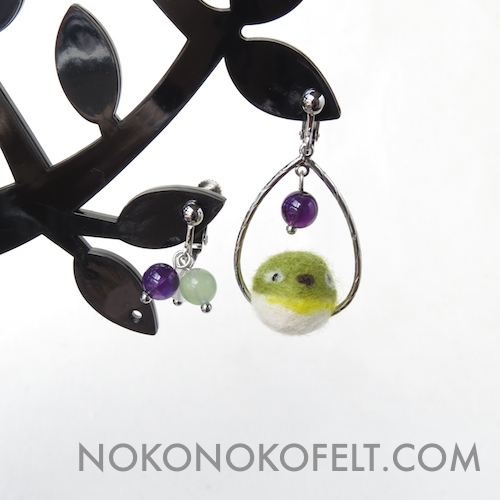 ゆらゆら揺れるまんまることり Tweet こんにちは! 「羊毛フェルトのまんまることり」へようこそ!! 今まで制作してきた、リング、ブローチ、ネックレス等のまんまることりのアクセサリー。 満を持して(笑)イヤリングを制作してみました! 左右比対称にしたので、可愛すぎなくて大人の女性にもぴったり!! 天然石と羊毛フェルトのコラボですww すずめに使用している天然石は、 カーネリアン、ハニーストーンとムーンストーン。 めじろに使用している天然石は、 アメジスト、ニュージェイドとムーンストーン。 後ろ姿もかわいいでしょ! 11月8日(土)東京ビッグサイトで開催される「デザインフェスタvol.40」で、販売いたしますので、もう少しお待ちください!! きもちが「ほっこり」とやすらくような作品を のこのこからあなたへお届けいたします。 Tweet 投稿ナビゲーション ゆる〜いお話始まりました!(笑)まんまることりふぁみりー 第2話 公開!! コメントを残す コメントをキャンセルメールアドレスが公開されることはありません。 ※ が付いている欄は必須項目ですコメント ※ 名前 ※ メール ※ サイト 次回のコメントで使用するためブラウザーに自分の名前、メールアドレス、サイトを保存する。 Δ
