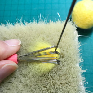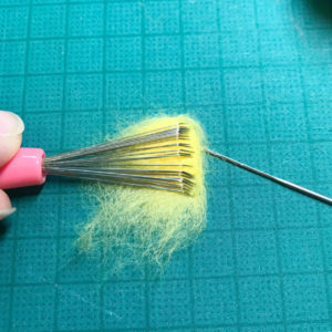【羊毛道具】100均で羊毛に使えそうなものを見つけてきた!! Tweet 先日、100均でこんなものを 購入してきました! 「ヘアブラシクリーナー」 これをどのように使うのか??? ブラシマットに入り込んだ 羊毛をかき出す?! だけじゃないんですよ〜! マットの上で使う 小鳥の尾羽などの小さい部分を作る場合 ブラシマットの上で 羊毛を刺し固めます。 小さいパーツなので 指を刺しそうですよね。 そんな時にこれを使えば 怖さがなくなります。 使う場合は、抑えている位置を 変えながら刺してください。 横刺しで使う 小さなパーツの 横の部分を刺し固める時も 指である程度押さえないと フェルト化しません。 マットと羊毛の間に ニードルを差し入れるのですが ちょっと怖いですよね〜。 専用指サックや フェルティングスポンジマットなどで 押さえる場合もあります。 この場合もこの 「ヘアブラシクリーナー」を使うと 若干押さえが緩いのですが、 怖さはなくなると思います。 100均の使えそうなお道具! 皆さんも見つけたら 教えてください!! ちなみに! しっかりとしたお道具は クロバーさんの 「アップリケパンチャー押さえ手」 がございますので、 ぜひそちらをご購入ください。 ブログ村ボタンを押して 応援お願いします!! にほんブログ村 にほんブログ村 オンラインショップ「いきも〜る」に出品中!! いきものグッズ専門「いきも〜る」に 出品中です!! 遠方の皆様、 ぜひこちらをご利用ください!! 出品中の作品は全て一点ものです。 いきも〜るサイト内 「のこのこ」で検索してね! メルマガ登録すると・・ 羊毛フェルトの まんまることりでは、 HTMLという 画像付きメールマガジンを 週一回配信しています。 上の緑の枠の画像を クリックしていただくと、 登録画面になりますので、 ぜひ登録してください!! こんなスマホの壁紙もプレゼント! リアルタイプのすずめちゃんも 可愛いでしょ?? 詳しい登録の仕方はこちら↓ nokonokofelt.com/?page_id=908 LINE@も配信中!! LINE@でも、 情報を発信しています! スマホでこの記事を 読んでくださっている方は、 下記のボタンを 押していただければ、 登録完了です!! LINE@の壁紙はメルマガの壁紙と 変えている場合もあるんですよ〜! 手軽に会話もできるので、 質問などありましたら、 LINEしてくださいね〜! 気持ちが「ほっこり」と やすらぐ作品を のこのこからあなたへ お届けいたします。 Tweet 投稿ナビゲーション 2021.2/9&13『まんまる「まるねこ」のお雛様』ワークショップ2021.3/9&13ワークショップ「リクエスト特集!!」 コメントを残す コメントをキャンセルメールアドレスが公開されることはありません。 ※ が付いている欄は必須項目ですコメント ※ 名前 ※ メール ※ サイト 次回のコメントで使用するためブラウザーに自分の名前、メールアドレス、サイトを保存する。 Δ