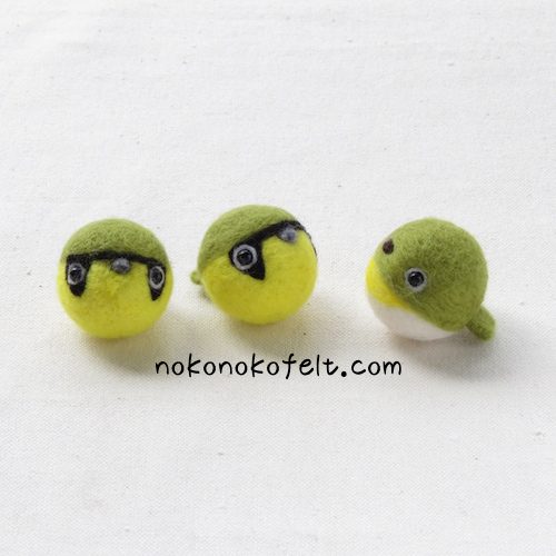 めじろ!めじろ!!めじろ!? Tweet こんにちは! 「羊毛フェルトのまんまることり」へようこそ!! 5月16日(土)〜17日(日) 東京ビッグサイト西館で開催される デザインフェスタvol.41 ブース番号G-446 で、お待ちしております〜!! 「のこのこ」の出展者紹介のページは こちら↓ goo.gl/bfN2ty デザフェスに向けての作品作りをしております! 「すずめ」と一番人気を争う「めじろ」ちゃん。 ウグイス色(笑)で可愛らしいですね〜! ん?? めぐろちゃん!! はじめまして、めぐろです! 三角の黒い模様がポイント! めぐろちゃんの初お披露目は、デザフェスにて。 ぜひ、手にとってごらんください! 後ろ姿はそっくりなので、めじろちゃんと間違えないようにしてくださいね!(笑) 「羊毛フェルトのまんまることり」では、HTMLという画像付きメールマガジンを週一回配信しています。 上の緑の枠の画像をクリックしていただくと、登録画面になりますので、ぜひ登録してください!! 詳しい登録の仕方はこちら↓ nokonokofelt.com/?page_id=908 気持ちが「ほっこり」と安らぐような作品を のこのこからあなたへお届けいたします。 Tweet 投稿ナビゲーション トキの学名は「◯ッポニア・◯ッポン」まんまることり+イヤリング!! コメントを残す コメントをキャンセルメールアドレスが公開されることはありません。 ※ が付いている欄は必須項目ですコメント ※ 名前 ※ メール ※ サイト 次回のコメントで使用するためブラウザーに自分の名前、メールアドレス、サイトを保存する。 Δ