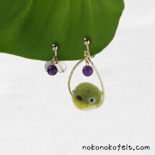 まんまることり+イヤリング!! Tweet こんにちは! 「羊毛フェルトのまんまることり」へようこそ!! 5月16日(土)〜17日(日) 東京ビッグサイトで開催される デザインフェスタvol.41 ブース番号 G-446 で お待ちしています! 出展者紹介はこちら ↓ goo.gl/EIurwg 前回のデザインフェスタで、大好評だったイヤリング。 今回は・・・ すずめ二羽 めじろ一羽 ねこ(みけちゃん)一匹の「計4個」制作できました! 片側にまんまるちゃん、片側は天然石のアシンメトリーイヤリングです。 初夏の風に揺れるまんまることり(まるねこ)。 デザインフェスタにて、販売いたします。 手にとってご覧ください〜! 気持ちが「ほっこり」と安らぐような作品を のこのこからあなたへお届けいたします。 「羊毛フェルトのまんまることり」では、HTMLという画像付きメールマガジンを週一回配信しています。 上の緑の枠の画像をクリックしていただくと、登録画面になりますので、ぜひ登録してください!! 詳しい登録の仕方はこちら↓ nokonokofelt.com/?page_id=908 Tweet 投稿ナビゲーション めじろ!めじろ!!めじろ!?見て、触れて、購入できる! コメントを残す コメントをキャンセルメールアドレスが公開されることはありません。 ※ が付いている欄は必須項目ですコメント ※ 名前 ※ メール ※ サイト 次回のコメントで使用するためブラウザーに自分の名前、メールアドレス、サイトを保存する。 Δ