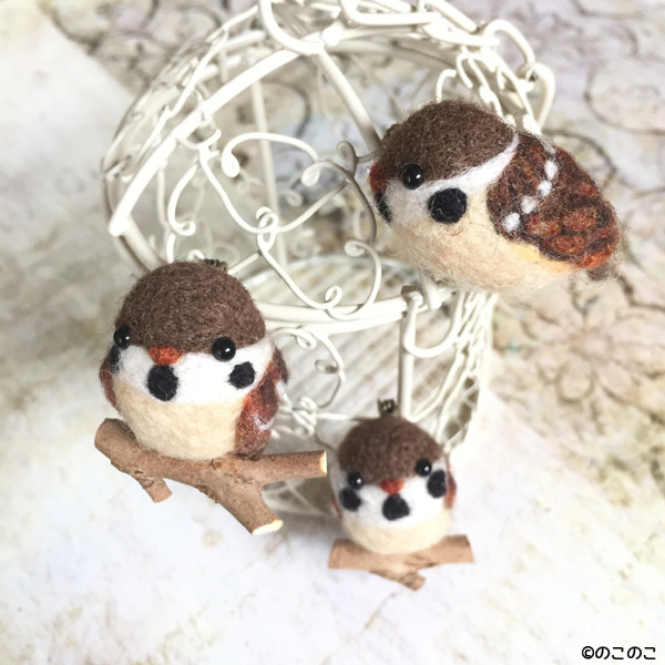 「前向き」な、羊毛フェルトの小さなすずめブローチ